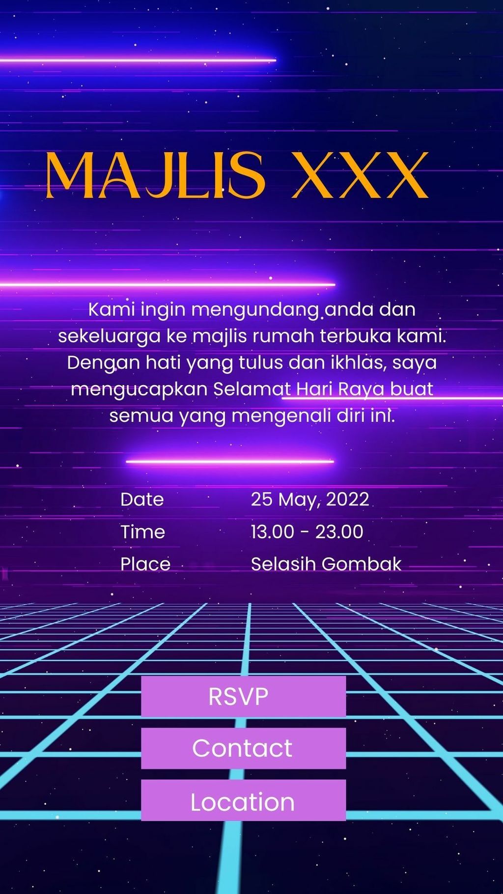 Tajuk jemputan hanyalah sekadar contoh tajuk design. Tajuk design boleh ditukar mengikut majlis yang anda sediakan.